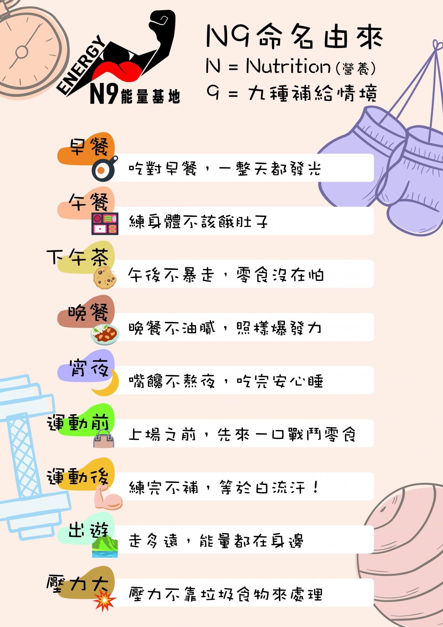 N = Nutrition(營養)    9 = 九種補給情境